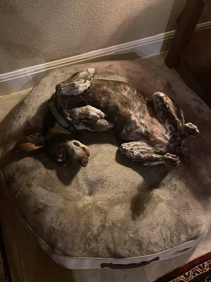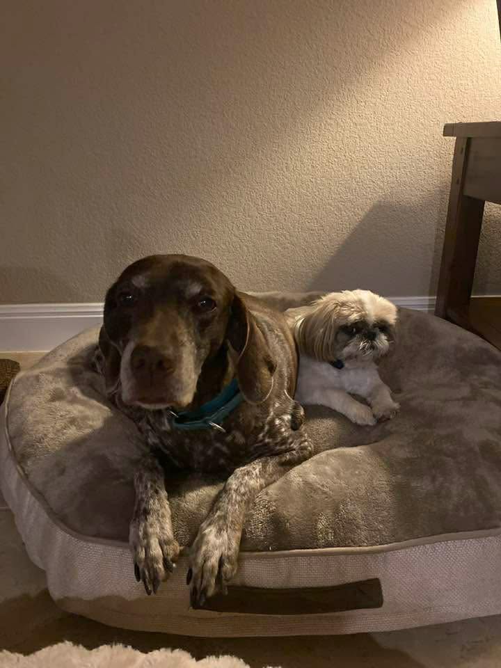Birdie may be a senior, but she does not know it! She is estimated to be 10 years old but still has a lot of spunk in her. She is the most loving carefree pup. She loves being with us wherever we are but is also independent and not too clingy (except at bedtime where she likes to sleep on the floor next to my bed). Birdie is perfectly fine with other dogs but I believe she would be just fine to have you to herself too. When we are outside, she is out running and sniffing the ground exploring the acreage. If we are inside, she is curled up on the couch (her favorite spot). She loves watching the chickens in their yard but has never tried to get in or even bark at them. Birdie IS cat friendly! Our cat is cautious of her but Birdie has never looked at her with ANY interest.