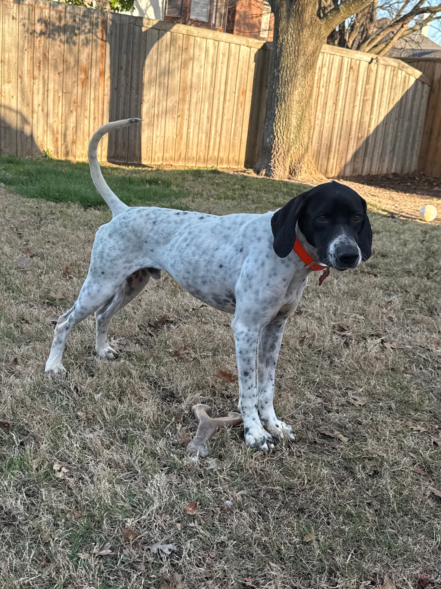 Meet Frank, a 2-year-old sweetheart with a serious velcro personality—he’s basically your shadow, always nearby and ready for snuggles and pets. This sturdy 55-pound guy came to us as a stray, so he’s still learning about indoor life and his own name, but he’s making great progress!