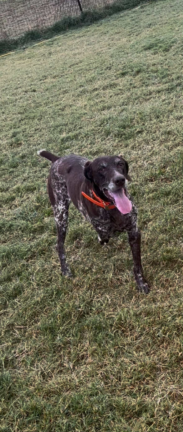 I am a 10-11 year old liver roan GSP. I am what you call a tripod. That means that I have 3 legs and not 4. To be honest, I am not sure that 4 are necessary as I get along just fine with the 3 that I have. I don’t remember where that 4th one went - but that, like my life before coming to my Texas GSP foster, is history and I am focused on my future!